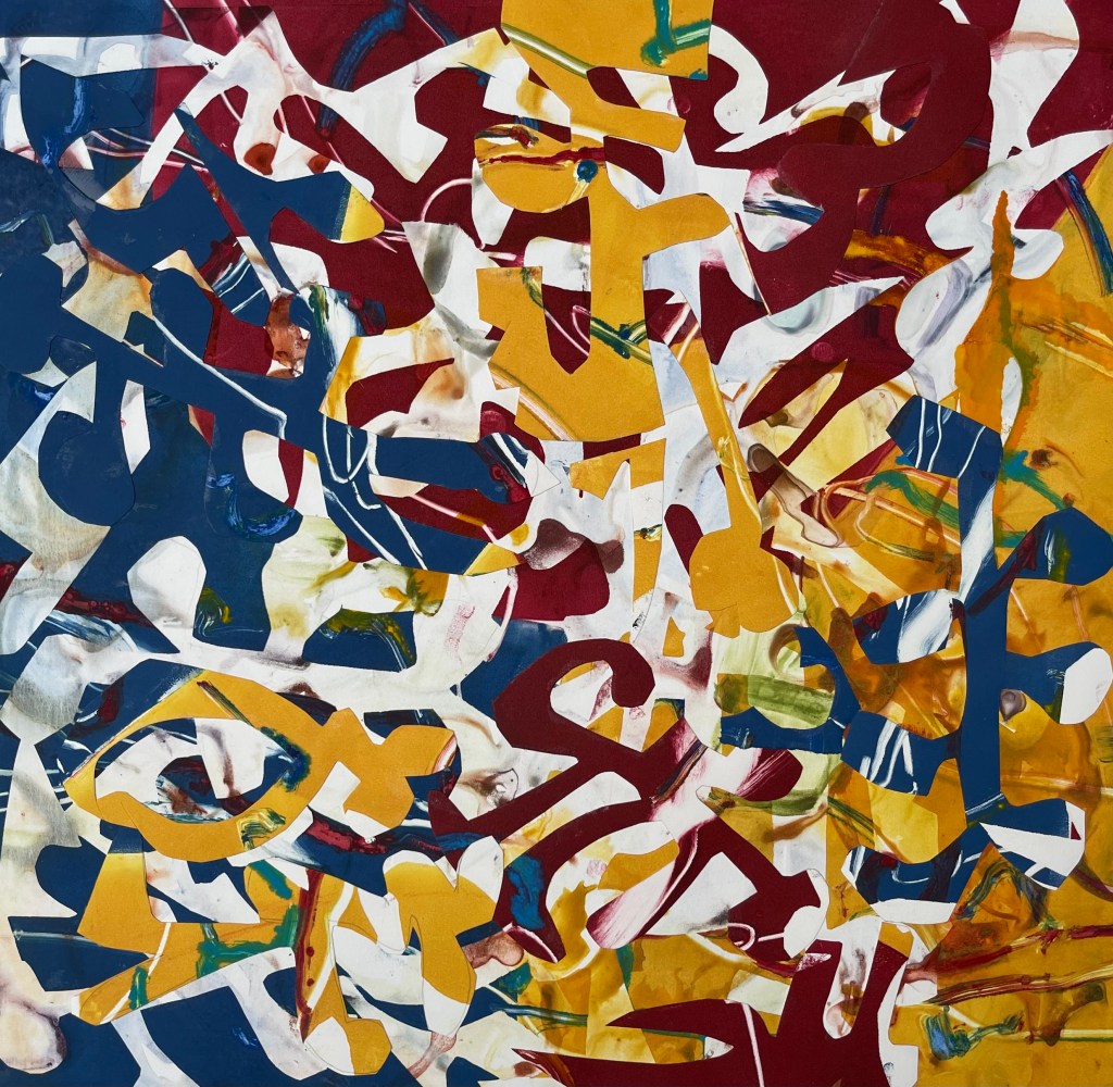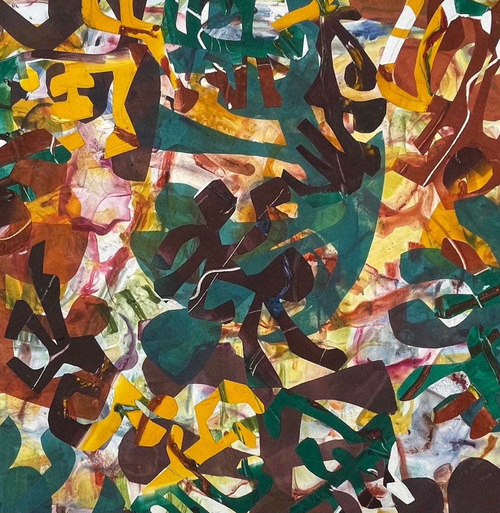 watercolor, ink monotype with collage